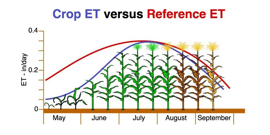 Compared to the reference crop under a specific set of conditions corn typically evaporates less water.